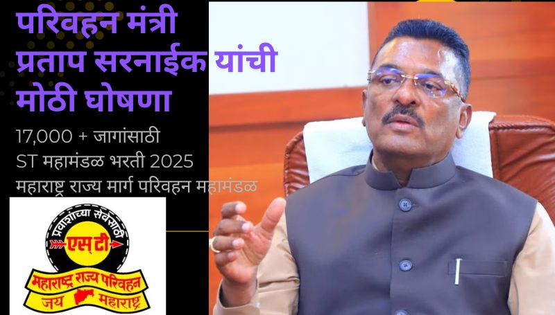 महाराष्ट्र राज्य मार्ग परिवहन महामंडळ च्या अंतर्गत येणारे ST महामंडळ भरती 2025 मध्ये 17000 हून जास्त पदांसाठी परिपत्रक प्रसिद्ध करण्यात आले आहे. महाराष्ट्र राज्याचे परिवहन मंत्री प्रताप सरनाईक यांच्या कडून या पद भरतीची घोषणा करण्यात आली आहे. 2 ऑक्टोबर 2025 पासून ई – निविदा या ठिकाणी भरती प्रक्रियेला सुरुवात होणार आहे. परिवहन मंत्रालयाने दिलेल्या माहिती नुसार या भरती अंतर्गत एकूण 17 हजार 450 जागा भरल्या जाणार आहेत. महाराष्ट्र राज्य मार्ग परिवहन महामंडळाच्या 300 व्या संचालक मंडळ बैठकीत हा निर्णय घेण्यात आला आहे. http://msrtc वर या भरतीची सविस्तर माहिती पुढे दिलेली आहे.